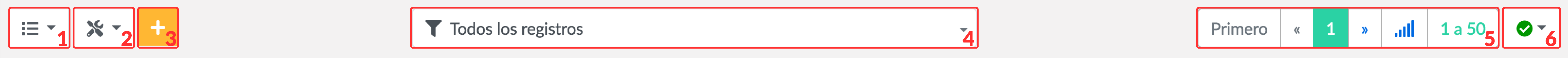 Barra de registros: son todos los registros agrupados en listas de 50 registros cada una.