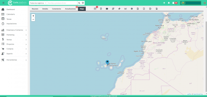 Si hemos añadido la dirección del contacto, en el mapa nos aparecerá dicha dirección: