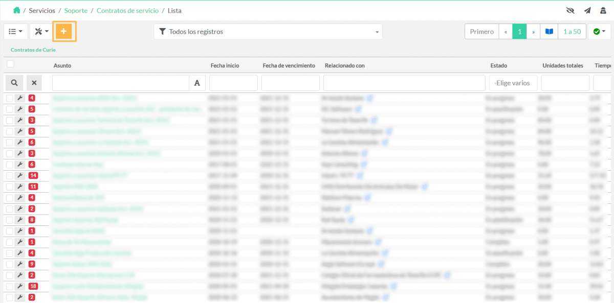 El objetivo de este módulo es que el equipo de soporte pueda crear, registrar, consultar y gestionar en el CRM todos los contratos de servicio con los clientes.
