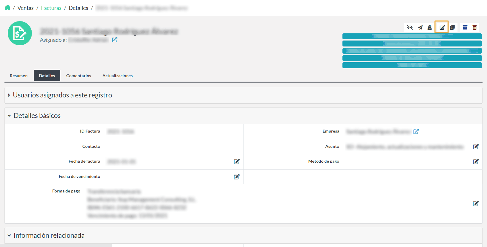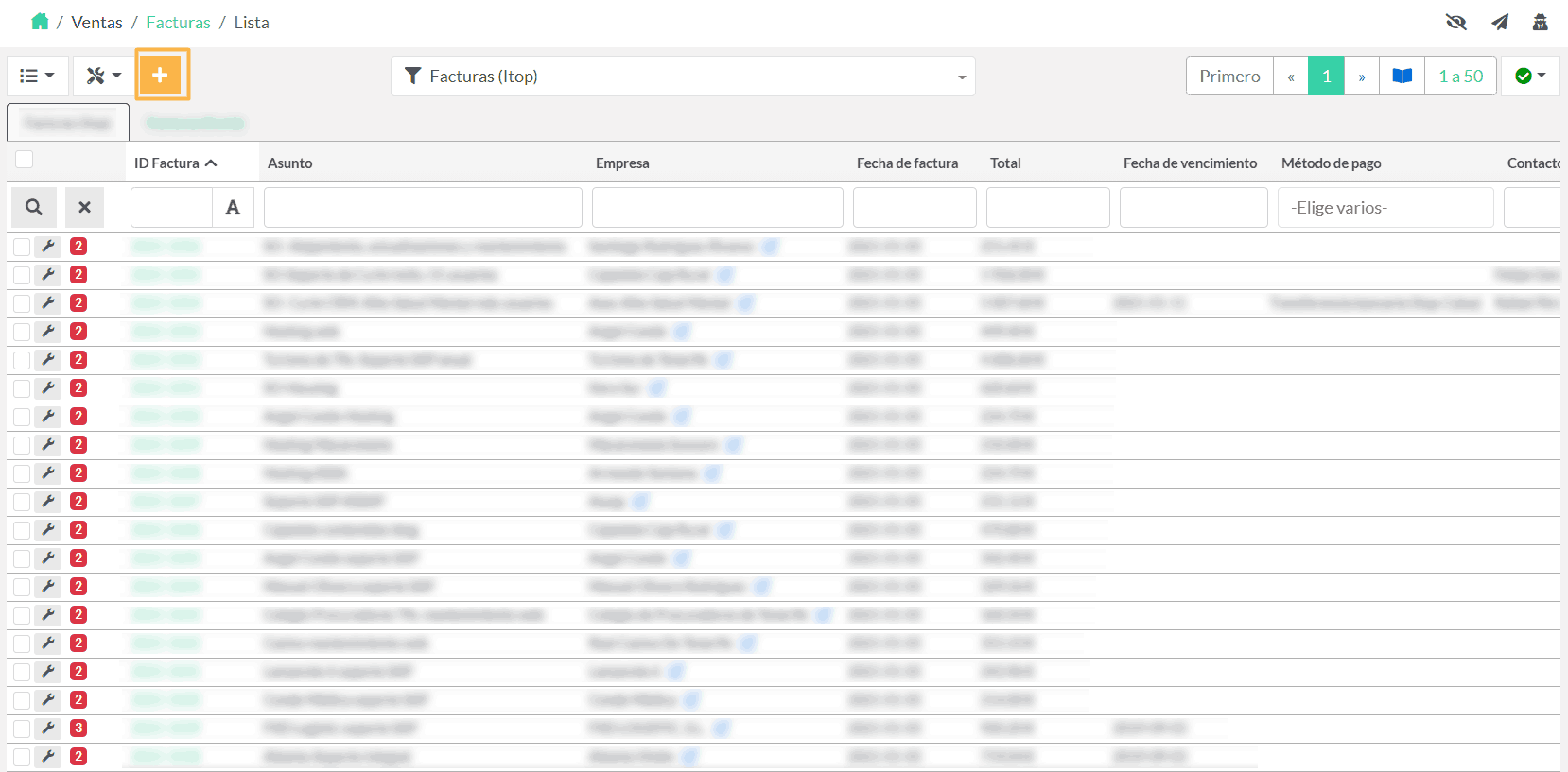 El objetivo de este módulo es que el equipo comercial pueda crear, registrar, consultar y gestionar en el CRM todas las facturas de los clientes.