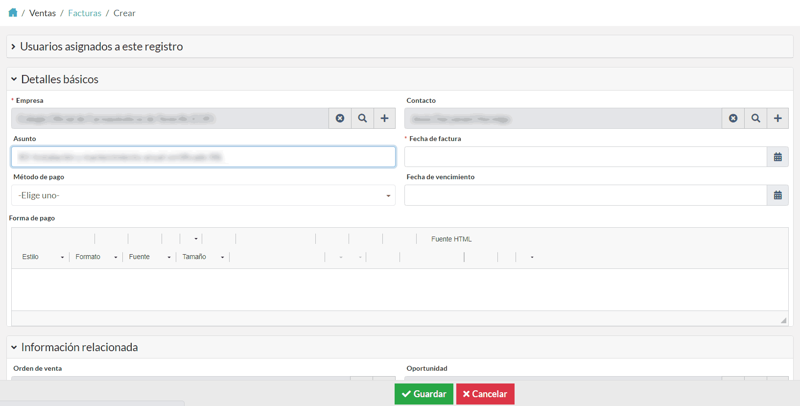 Podemos crear fácilmente una factura ingresando información en los campos provistos.