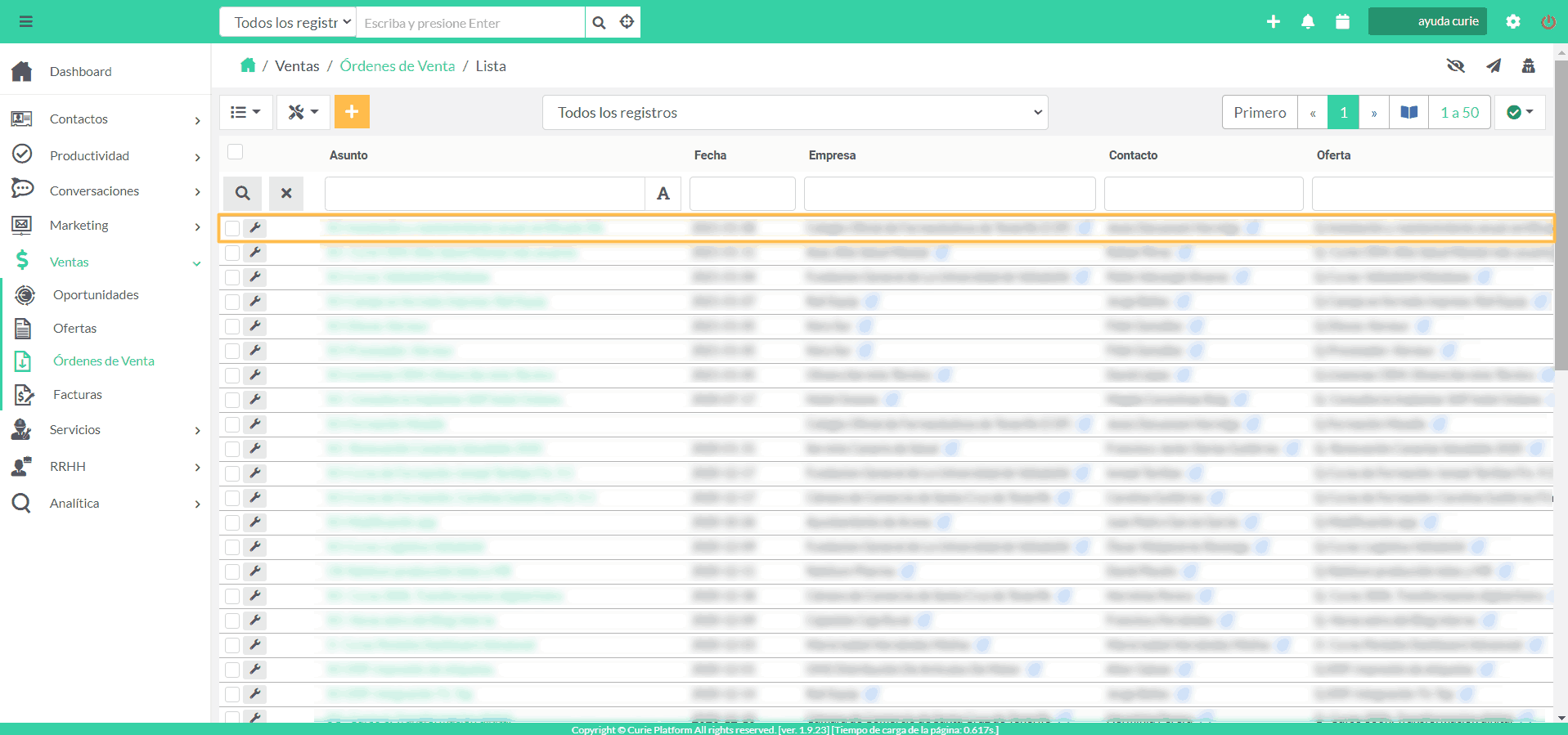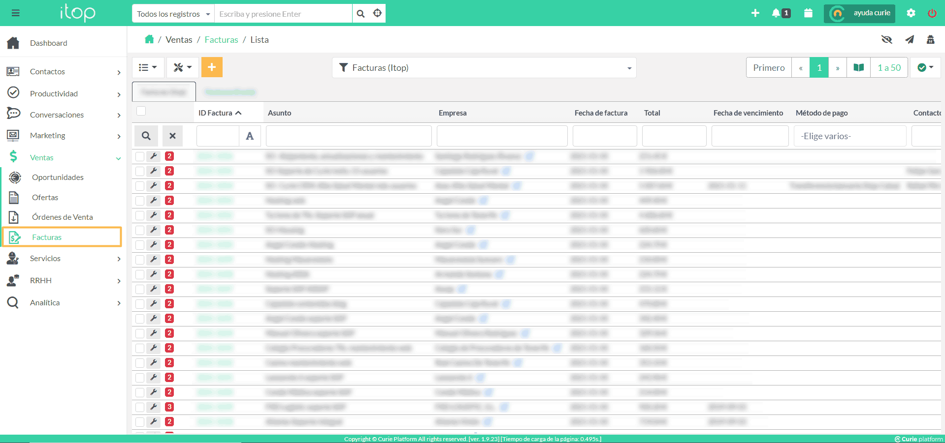 Uno de los módulos incluidos en el proceso “Ventas” de Curie Platform, es el de “Facturas”.