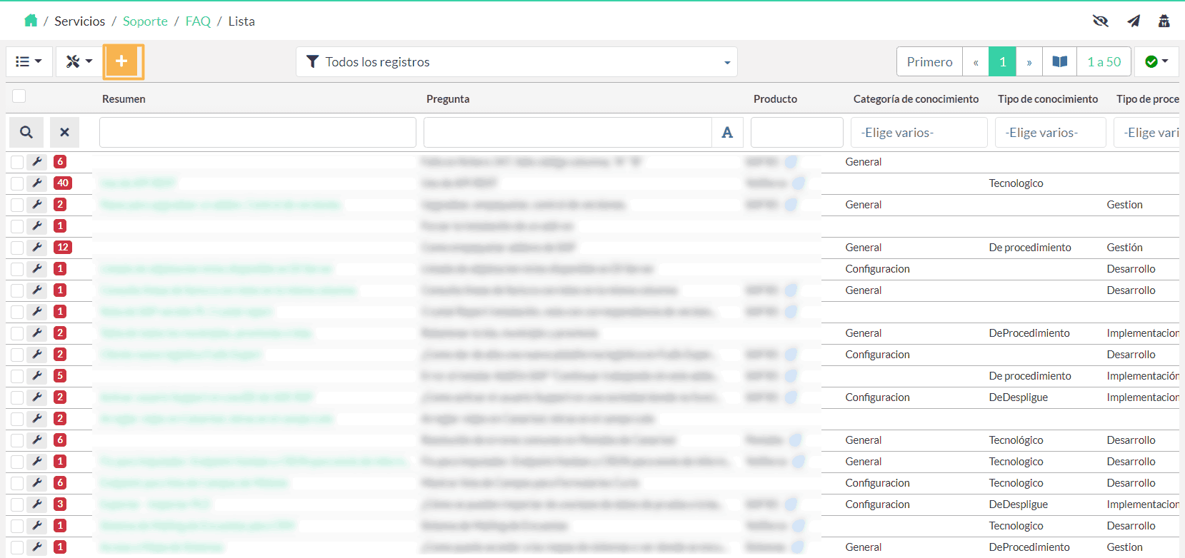 El objetivo de este módulo es que el equipo de soporte pueda crear, registrar, consultar y gestionar en el CRM todas las preguntas y respuestas más frecuentes de los clientes.